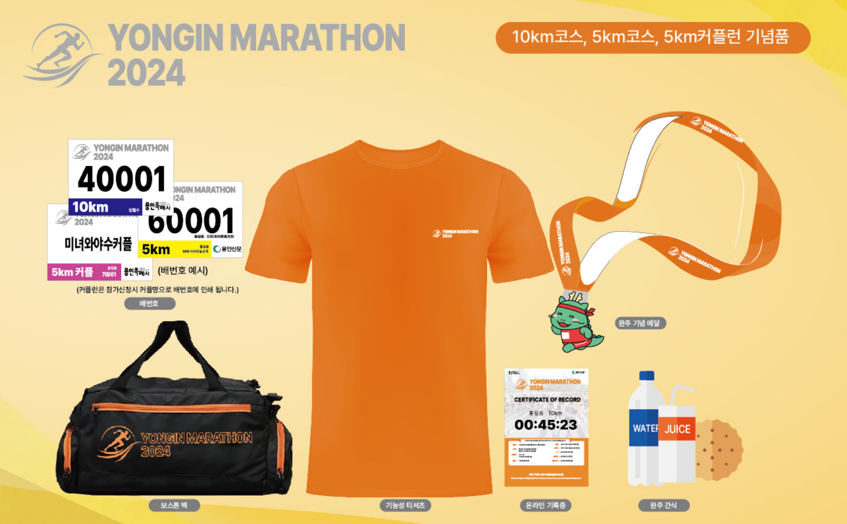 용인 마라톤 참여시 아래의 기념품을 지급받을 수 있습니다.